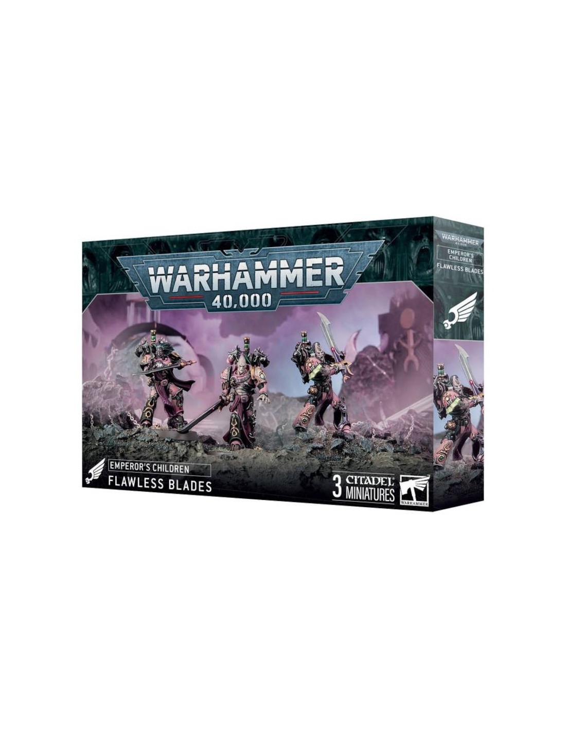 Les Flawless Blades incarnent la perfection martiale des Emperor’s Children, légion déchue vouée au Chaos et aux excès de Slaanesh. Guerriers d’élite dont chaque mouvement est une démonstration d’art létal, ils combinent vitesse, précision et raffinement macabre pour terrasser leurs ennemis avec une grâce terrifiante.