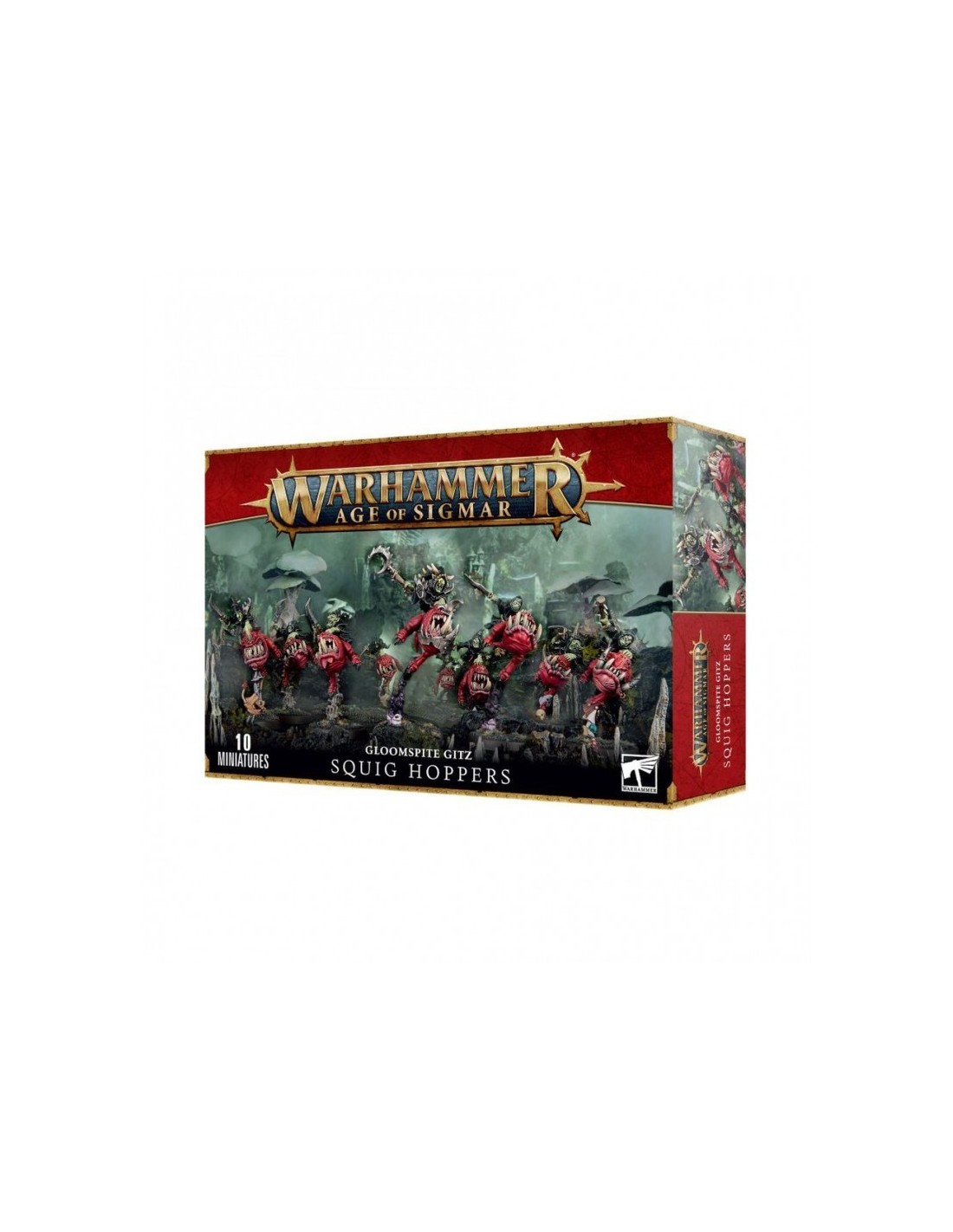 Ce coffret contient 10 figurines représentant un Troupeau de Squigs accompagné de leurs bergers grots, unité iconique des Gloomspite Gitz pour Warhammer Age of Sigmar. Véritables projectiles vivants, les Squigs bondissent dans les lignes ennemies, causant des ravages avant de s’évanouir dans un carnage de mâchoires affamées. Les Squig Hoppers sont imprévisibles et mobiles, capables de sauter par-dessus les décors et les unités ennemies alors qu’ils poursuivent leur proie. Ils sont parfaits pour attraper les ennemis en fuite ou pourchasser les unités vulnérables à l’arrière des lignes ennemies.