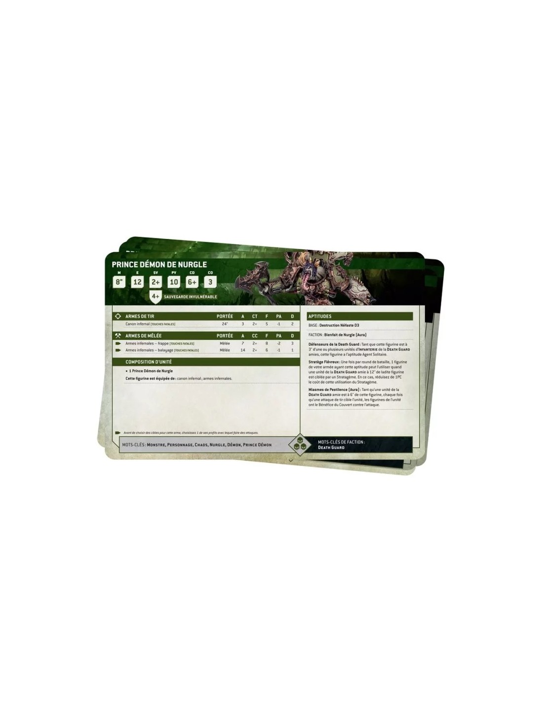 Ce coffret contient un ensemble complet de cartes dédié à la redoutable Death Guard, faction des Space Marines du Chaos dévoués à Nurgle dans Warhammer 40 000.