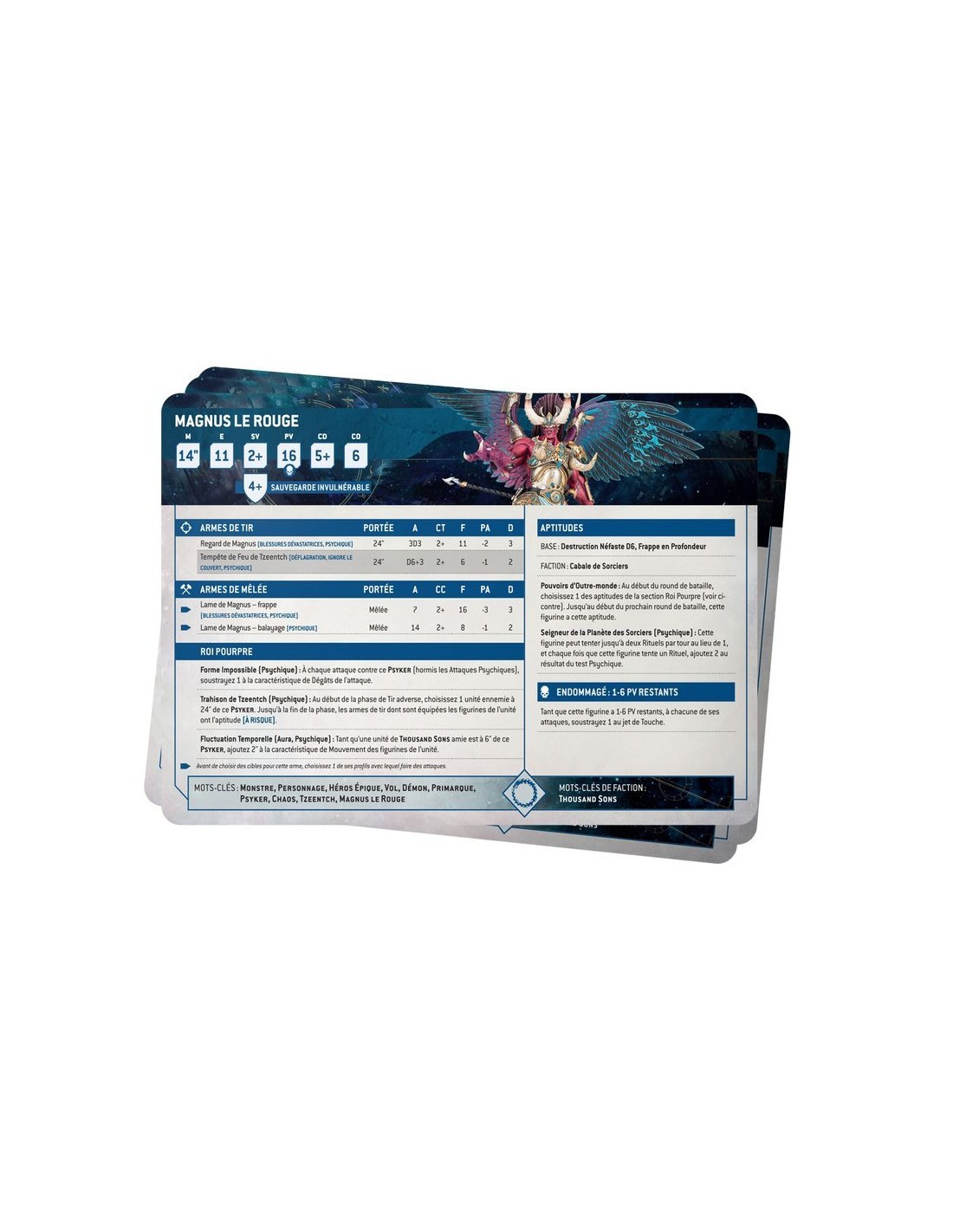Un outil indispensable pour tous les commandants des Thousand Sons : ces cartes techniques facilitent la gestion des stratagèmes, pouvoirs psychiques et règles d’armée pendant vos parties de Warhammer 40,000.