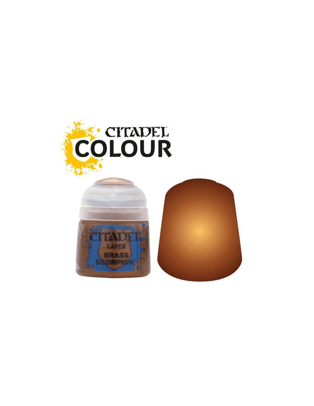 Brass Scorpion est une peinture acrylique Citadel Layer, spécialement formulée pour donner un rendu métallique cuivré profond. Sa texture fine permet d’apporter des rehauts brillants ou de travailler en glacis sur des bases plus sombres, tout en mettant en valeur les détails sculptés.