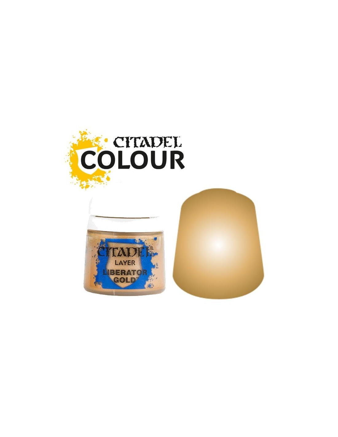 La Layer – Liberator Gold (22‑71) fait partie de la gamme Layer de Citadel. Elle est formulée pour permettre des highlights précis sur des surfaces métalliques, notamment sur une base dorée comme Gehenna’s Gold ou Auric Armour Gold. Son rendu est un métal réaliste avec un effet doré lumineux de qualité.