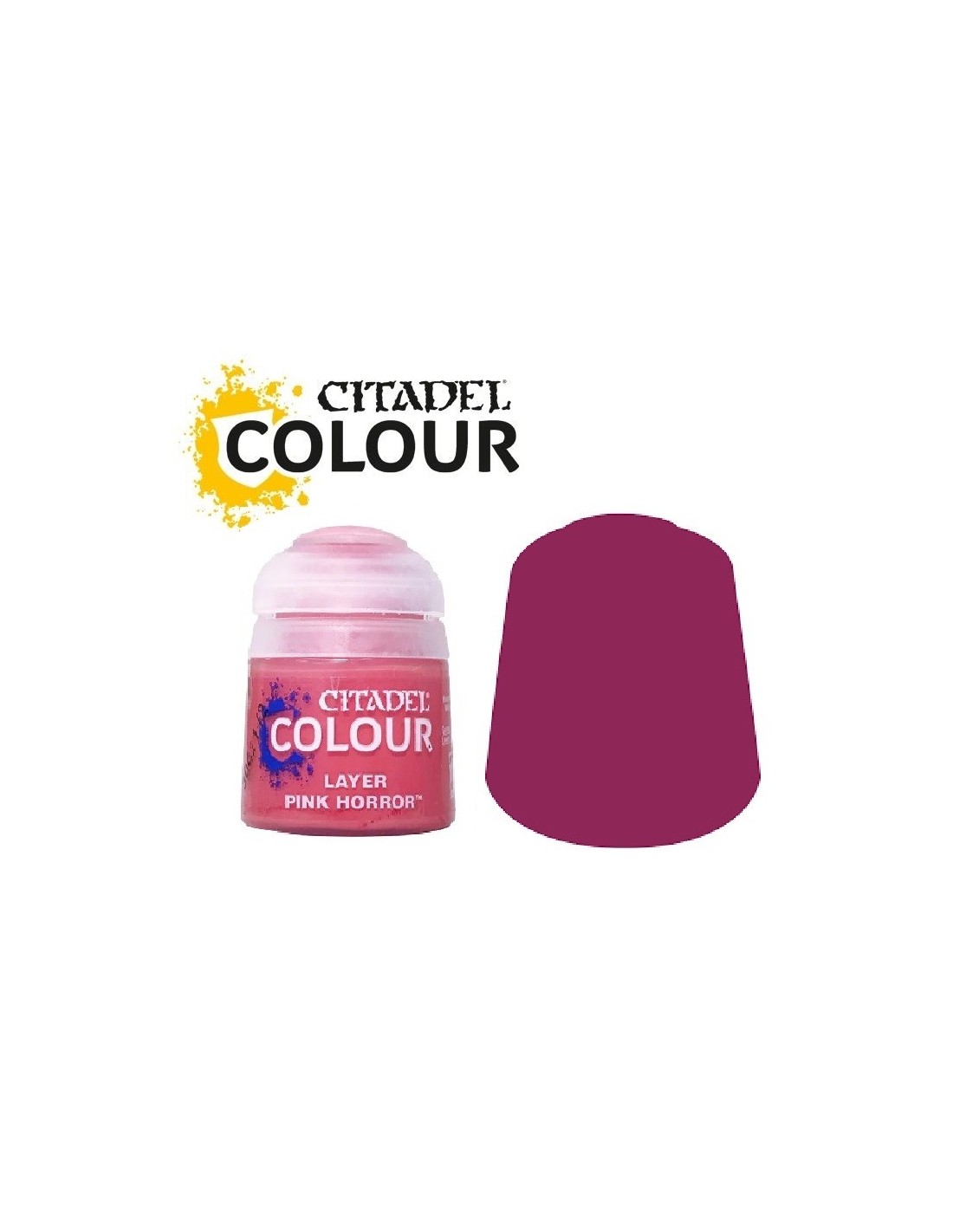Pink Horror est une peinture acrylique Citadel Layer, formulée pour être appliquée sur des bases plus sombres ou plus saturées. Grâce à sa texture fine et sa pigmentation équilibrée, elle permet d’ajouter des nuances vibrantes de rose sur vos figurines, tout en préservant la finesse des détails sculptés.