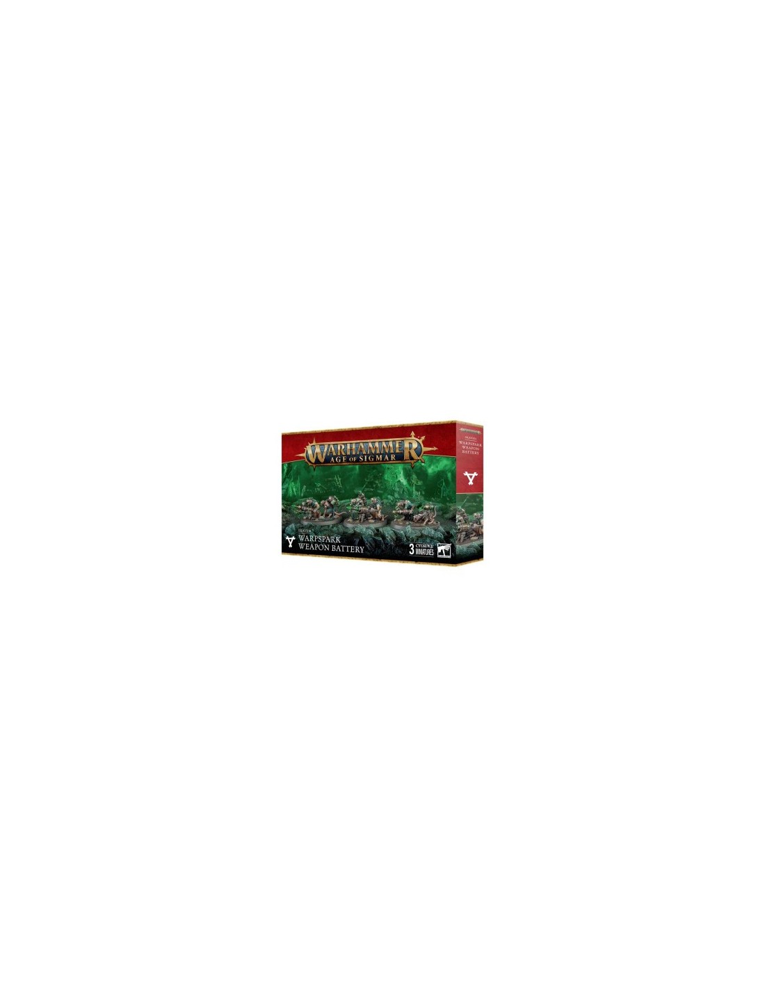 Ce coffret contient 3 figurines représentant des Batteries d’Armes Malétincelle, armes lourdes de soutien de l’armée Skaven pour Warhammer Age of Sigmar. Déployées par le Clan Skryre, elles déversent des rafales d’énergie pure pour briser les lignes ennemies, tout en risquant à chaque tir de s’autodétruire dans une explosion de Malepierre.