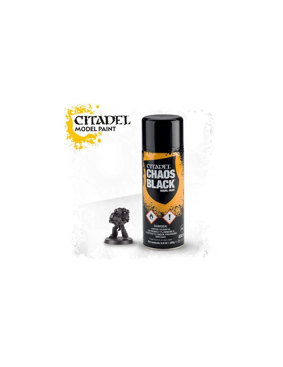 Chaos Black est un spray de sous-couche acrylique conçu pour préparer rapidement et efficacement vos figurines avant peinture. Ce produit incontournable de la gamme Citadel Colour garantit une excellente adhérence, un séchage rapide, et une finiton noire mate parfaite pour :